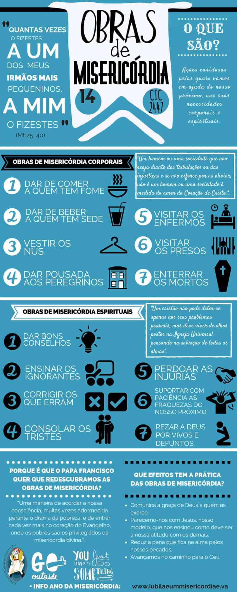 Veja mais abaixo uma breve explicação de cada uma das 14 obras de misericórdia