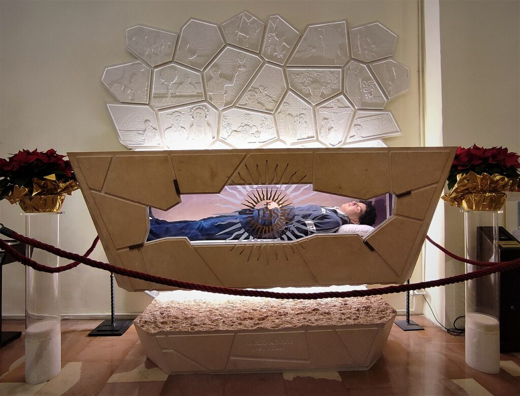 Além disso, seu corpo, apesar de não estar incorrupto, encontra-se em um estado de conservação impressionante. Ele também está vestido com roupas simples: jeans e um par de tênis, refletindo sua vida cotidiana. Este traslado tornou Carlo ainda mais acessível aos fiéis que visitam Assis, proporcionando um local de peregrinação e oração.